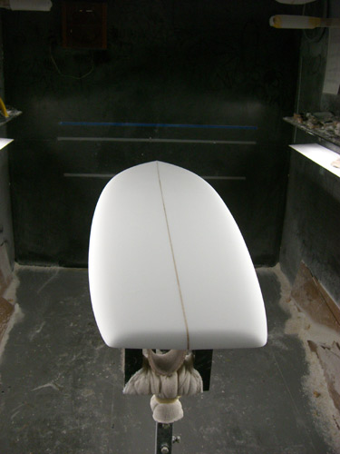 「ハルボトムにコンケーブを入れる」という表現がシンプルでないならなにがシンプルでしょう?ひとくくりにコンケーブボトムと呼ぶのはシンプルというよりは「乱暴」です。サーフボードのボトムは、ノーズから水が入ってセンターを通りテールに抜けていきます。テールだけでボードの基本性能が決まるものではありません。私が「ハルボトムにコンケーブを入れる」という言い方で表現したいのはボトムの起伏と「レールの形状」です。丸く膨らんだボトムはレールがデッキへ向かってアッパーレールになっています。そこにボードのストリンガーに沿ってコンケーブを掘るとレールを含めたボトムの形がどうなるのか想像しやすいように表現したつもりです。なぜわざわざそんな言い方をするかというと、「レールの形状」はサーフボードに実際に乗ったときの感覚に大きな差を生む重要な要素だからです。その部分がとても重要だから「ハルボトムにコンケーブを入れた」ボトム形状と表現をしているのです。シェイプの過程はまさに「ハルボトムにコンケーブを入れた」のとおりです。
