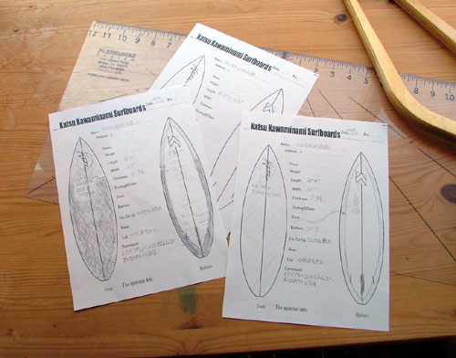 川南活さんにお願いするストックのニューボードをプランニング中です。長さは、8’0と8’4”の2本。両方ともラウンドピンテールのシングルフィンです。