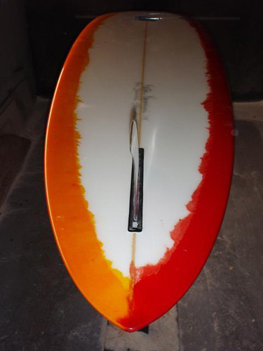 上のトライプレーン・ハルとは2インチの長さの違いですが、ラウンドノーズのおかげでテイクオフがチョー速い。6.8のミニに乗っているみたいな感覚でした。ラウンドノーズのおかげです。