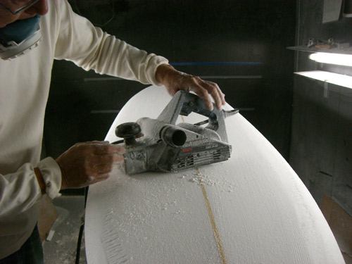 活さんは店用にお願いしている、8.0と7.10のハイブリッドロングボードをシェイプ中です。