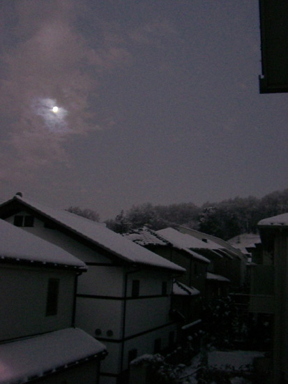 昨夜はすごい雪でした。帰る途中で本格的に降り出して、駅を降りるともうあたりは真っ白。空から降ってくる白い雪にしばらくのあいだ見とれてしまいました。久しぶりです。雪雲の上では輝いていたはずの月と真っ白な雪のせいなのか、明るい夜でした。家までの帰り道にある公園は普段は真っ暗で中はほとんど見えないのですが、昨夜は葉が落ちた森の奥まではっきりと見通せました。雪明りですね。