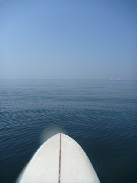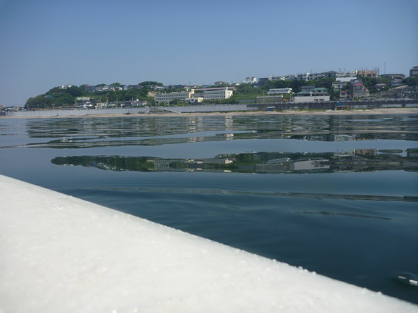風もなく滑らかな海面を静かに滑っていきます。海の上は心なしか涼しくて、海水も冷たくて気持ちよいです。