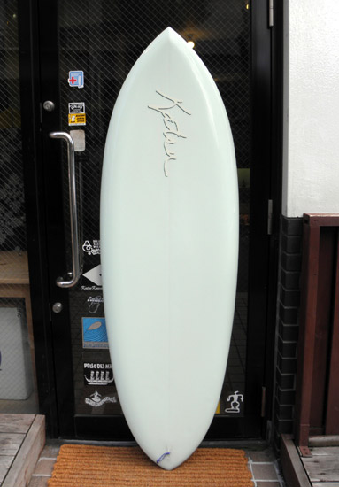 5’8”のDISHです。コンケーブとレールエッジで調子よく反応してくれるシングルフィンです。クリスのクアッドフィッシュも値下げしました。詳しくはホームページをご覧ください。