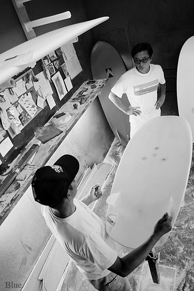 ショップのオープンは2001年。それ以来、ロングボードをベースに、フィッシュ、ボンザー、シングルフィン、ニーボード、パイポとさまざまな種類のサーフボードを作り、試してきました。