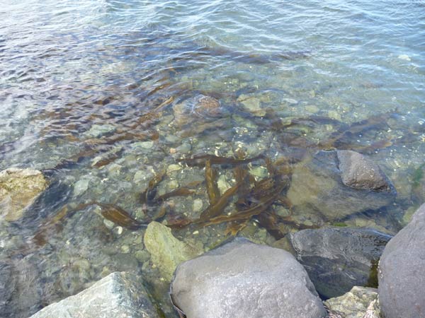 こんな感じで、波打ち際には鎌倉でよく見かけるワカメと同じように波間を漂っている昆布がたくさんです。