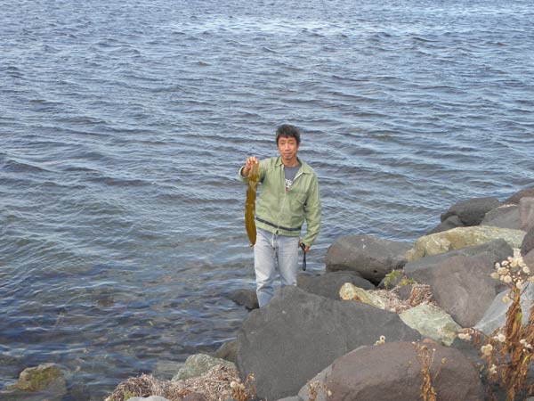 これは宗谷岬で撮影しました。手に持っているのは昆布です。