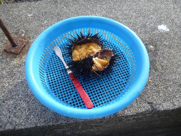 だからウニも利尻昆布も魚も美味しいようです。ひっさしぶりに思わず美味い!と言ってしまったウニを食べました。ムラサキウニです。漁師のお兄さんが剥いてくれました。