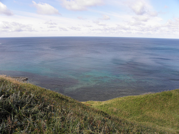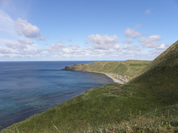 この岬の先の湾の中にも波がいたるところで割れていましたが、波間に漂っているのはアザラシだけ…。ここ、波乗りできるなあ。