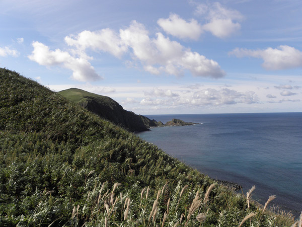 水平線が丸く見えるのはレンズのせいではありません。遠くにはサハリンの島影が見えました。