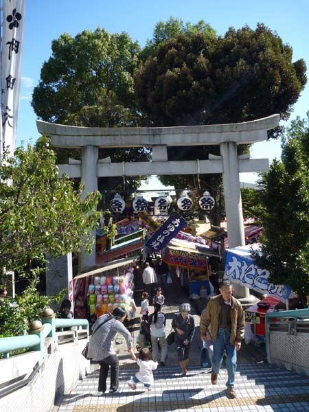 境内は出店がぎっしり。金魚すくい、たこ焼き、焼きそば、お好み焼き、リンゴ飴、焼き鳥、いろんなお店があります。子供のころには、ひよこ釣りなんていうピヨピヨとカワイイのもありましたが最近は無いのかな?(子供心にはかわいくて仕方なかったんですが、今考えれば動物虐待ですね)