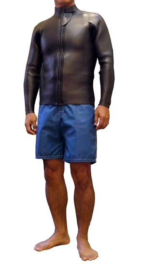 作ってもらったのは3mmのネッスルスキン。タッパーよりもしっかりとしたイメージ。丈も長めで腰下までしっかりカバーしてくれます。そんな、こんなで「ジャケット」。