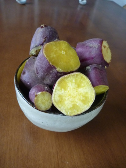 まずは直球ストレート。サツマイモを厚手の鍋で焼いた鍋焼きイモ。熱伝道がいい鍋を使って弱い火でじっくり焼くので、ほっこり甘くて食べ過ぎます。