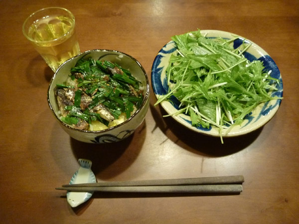 オイルサーディンの缶詰があったので、久しぶりに与論丼を作ってみました。