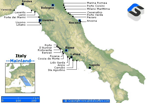 イタリア、せっかく行くので波乗りのことを調べてみるとサーフポイントはたくさんありました。