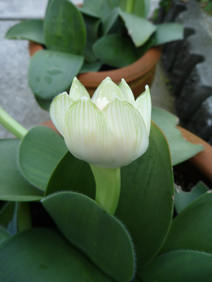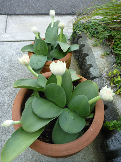 鉢植えの眉刷毛万年青(まゆはけおもと)の花が咲き始めました。我が家ではこれが咲き始めると秋本番です。