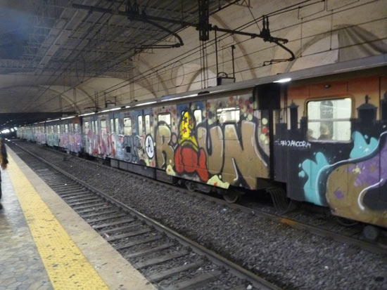 長~いフライトの末にやっとローマ フィウミチーノ空港に到着。ロストバゲージもなく無事にスーツケースを受け取りFR(ローマの国鉄)を使ってローマ市内へ。ほとんどの旅行者が目指すローマのテルミニ駅行きの急行ではなく、ローカル列車でトラステヴェレという駅に向かいます。