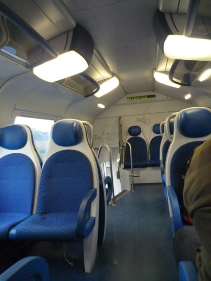 日曜の朝、8時前の電車はガラガラ。ローカル列車だし。