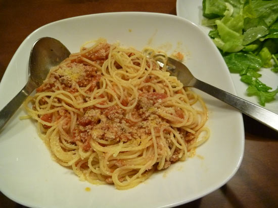 パスタで…。
