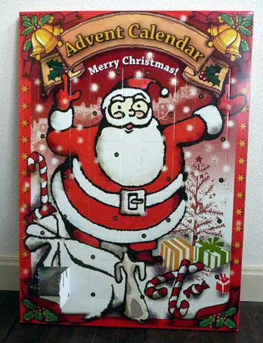 今日から師走。日付のところをこじ開けて1日1個ずつ中のチョコレートを食べ続けたらクリスマスにはサンタ体形になれるらしいカレンダーは今日からスタートです。