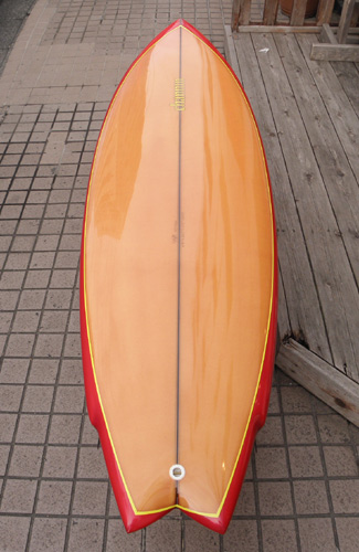 ツインフィンのルーツはご存知、フィッシュです。サンディエゴで使われていたフィッシュのスピードとマニューバを見た、リノ・アベリラとマークリチャーズの二人の名デザイナーがさらに発展させたデザインです。