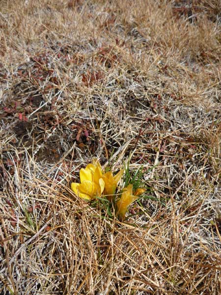 日当たりの良い斜面ではクロッカスの花が咲き始めています。