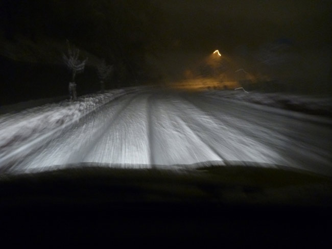 赤信号で3メートルほどスリップしてオーバーランしましたがなんとか無事に家へたどり着きました。スリル満点でした。