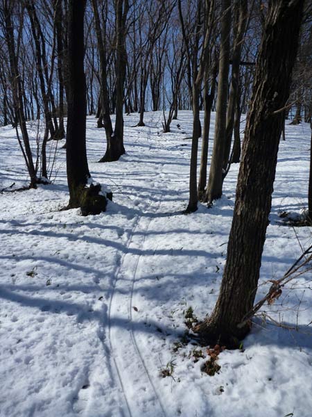 すでに誰かが楽しんだトラックが林のてっぺんから続いていました。マジに遊べます。
