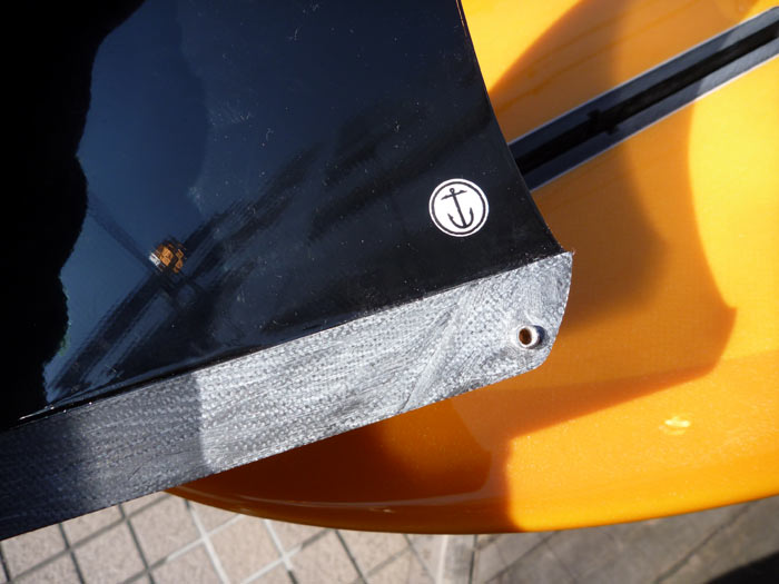 エッジは最後の最後、テール先端にちかい部分だけにタックドアンダーっぽくレールの下あたりにエッジが付いています。