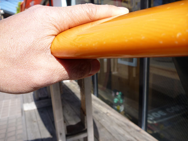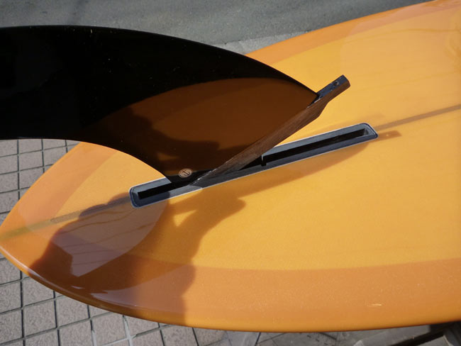 このピンテール、久しぶりにBOXフィンのロングボードです。フィンBOXのフィンってグラグラしないようにがっちりとはめ込むので、外すときに、布を当てて手で引っぱたいたりと手が痛くなってしまうこともしばしばです。
