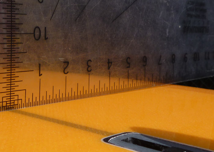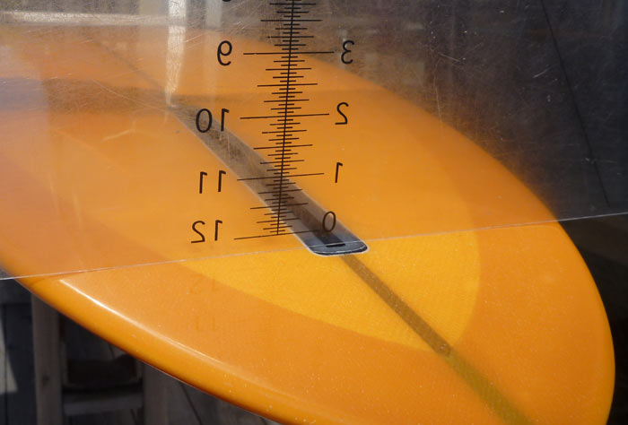 ここからが面白いのです。フィンの前にはしっかり入っていたVEEは、フィンBOXから後方へかけてまた緩くなってほぼフラットな状態になっています。