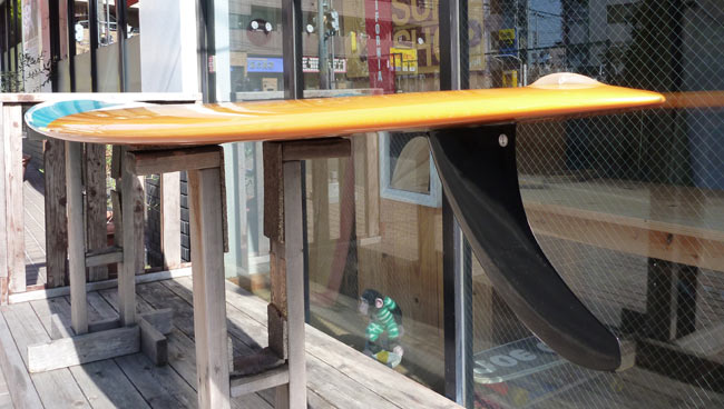 ショップのオープンは2001年。それ以来、ロングボードをベースに、フィッシュ、ボンザー、シングルフィン、ニーボード、パイポとさまざまな種類のサーフボードを作り、試してきました。