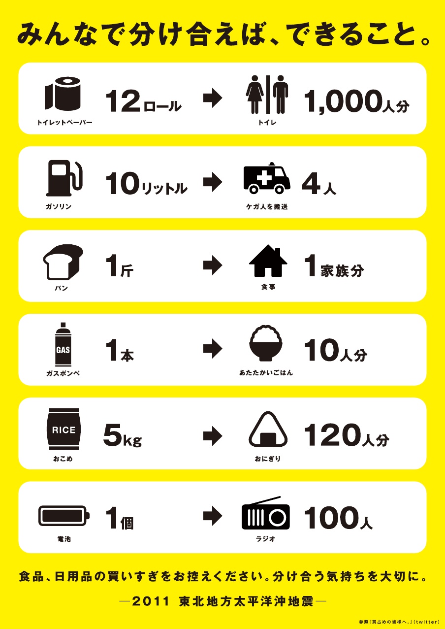 だから生活をいつもどおりに戻して、物資は必要としている地域に回るようにしましょう。