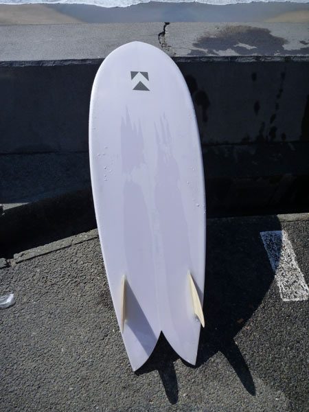 KK FISH 長さは5’6”です。初めて乗ったときにはラウンドノーズとダウンレールの浮力にとまどいました。