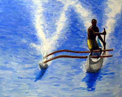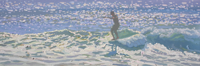 コンペティション系じゃないけれど、サーフィンのスタイルなどで名が知られているサーファーたちは絵も描くのがお約束なのが最近の風潮です。でも私の個人的な好みでいえば、アブストラクトか落書きかよく分からない作品よりもケヴィン・ショーツさんの作品のように光と色が感じられる情感あふれる作品が好きです。