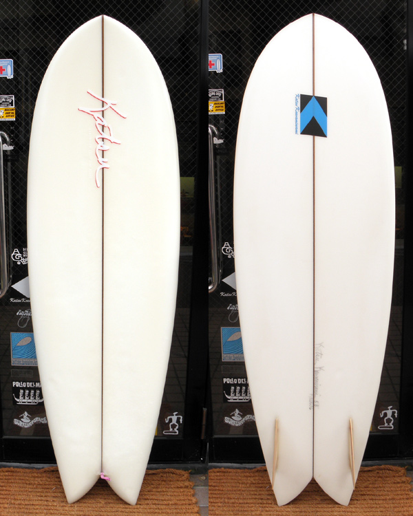 もう1本はジョエルチューダー・サーフボード ダイヤモンド・エッグ。現在は手に入らない、ステュ・ケンソンシェイプです。長さは7’4”。サイズがある波で使ってもよし、ロングボーダーの2ndボードとしてもよしです。