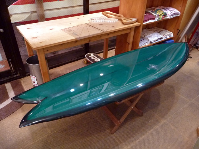 クリスのシェイプ、きれい…。最近は妙な形のボードが人気らしく、いいんだか悪いんだか分からないようなボードをたくさん見てますが、クリスのボード改めて見てハッとさせられました。エディのシェイパーはやっぱりオーラ出てますね。