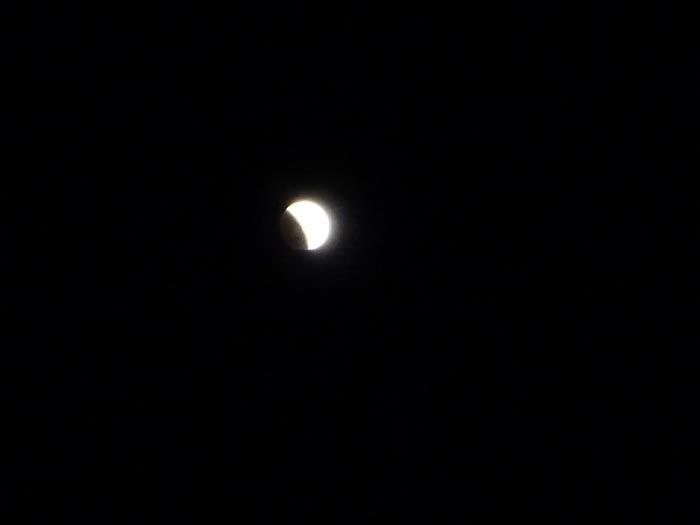 小さなデジカメで運良く写った一枚。お月さん、下の方からパクリと食べられてます。