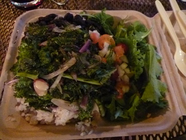 オーガニック系のカフェのブースで買ったベジプレートが晩御飯。今日は野菜ばっかり食べています。