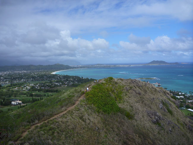 地元の人たちは大抵がこの景色を見て引き返していきますが、私たちはさらに先へ進み、いくつかのピークを越えて反対側の尾根を降りて無事にカイルアの町まで戻ることができました。ちょっとした冒険でした。