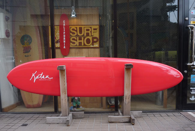 Tさんのプリモ出来上がりました!真っ赤なピグメントがかっこいいです。長さは8フィート。ロングボードよりも取り回しは格段に軽いですが、ロングと同じように滑り出しは早く、ロングボードのようにクルージングが楽しめるボードです。