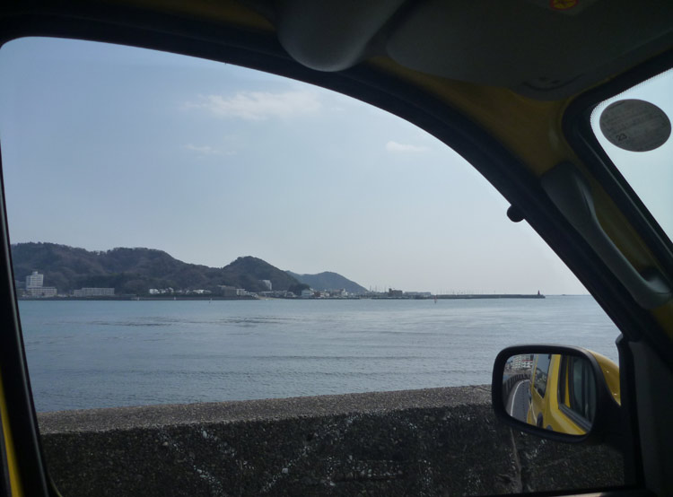 海沿いの1本道は見える限り車の列が続いています。