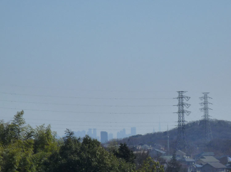 分かりますか?ビル群の右側です。新宿の高層ビルよりも遠いのにぜんぜん高いです。