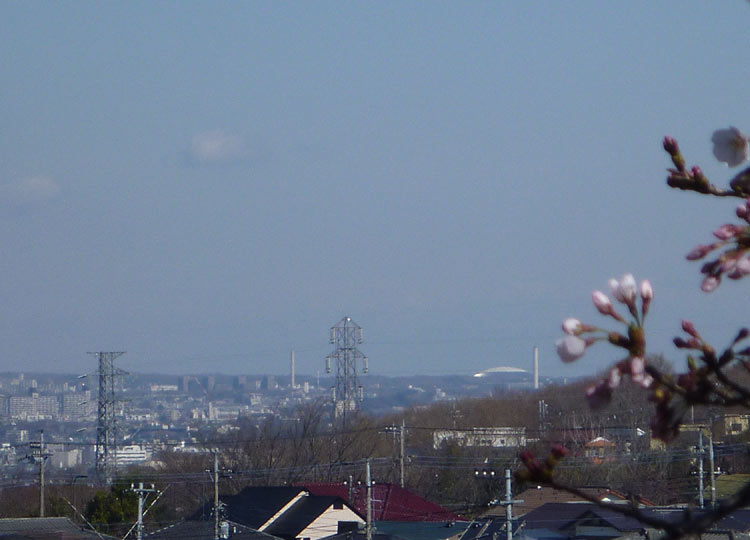 北の方角を見ると、西武ドームが。(右側の白い円盤みたいなのがそうです。)
