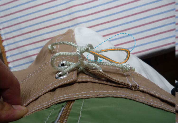 トランクスのヒモは海の中では気が付かないうちにほどけてしまうものですが、ほどけにくい、ほとんどほどけない…いえ、ほどけないと言い切れてしまうチョウ結びがあります。