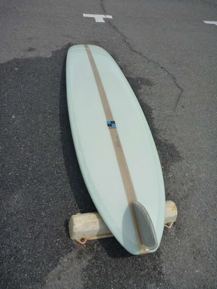 カツさんが70年代に乗っていたシングルフィンの中でも一番調子が良かったのはダイアモンドテールのこんなアウトラインだったそうですから(幅はもう少し狭いでしょうね)シングルフィンの最終形態のひとつと言えそうです。