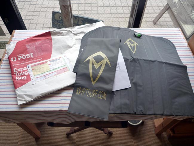 サーフマット大王のマーク・トムソンさんからサーフマットが届きました。クリプト サーフマット シリーズ3、最新バージョンです。デッキにドルフィンスキンという滑りにくい素材を使っているのが一番大きな改良点です。