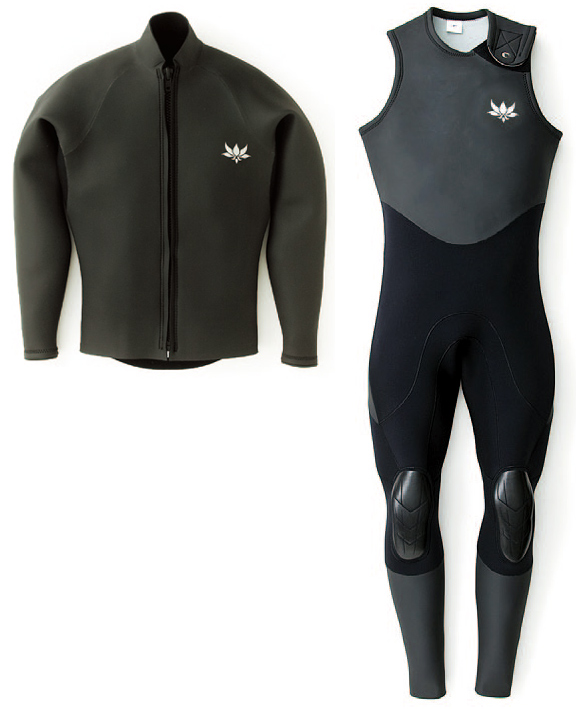 サーフ男子には、きっちりクラシックなジャケットとロングジョンの組み合わせ。