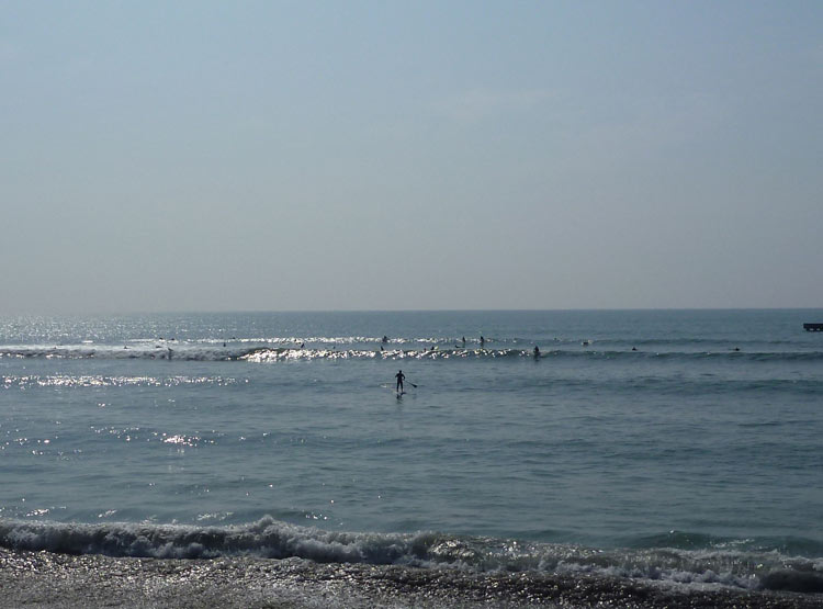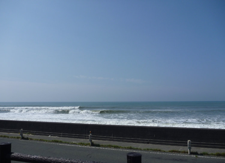 翌日は周辺のビーチをチェックしてみることに。静波海岸は台風のうねりがしっかり入ってアタマサイズ。昨日これだったら良かったのになあ、と思いつつ他のビーチをチェック。