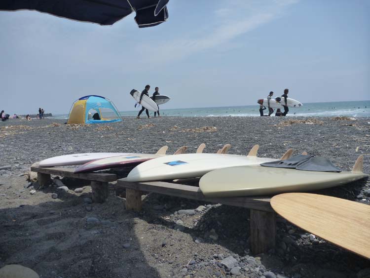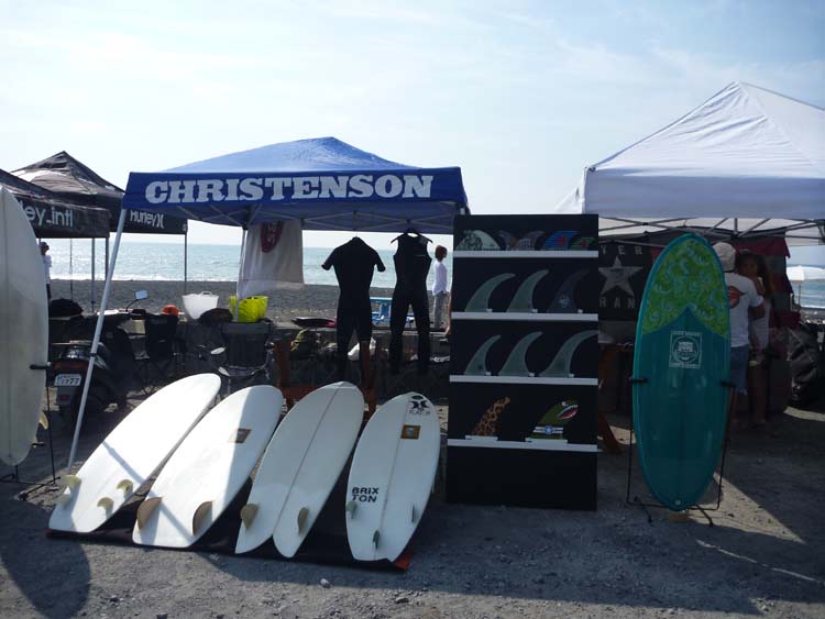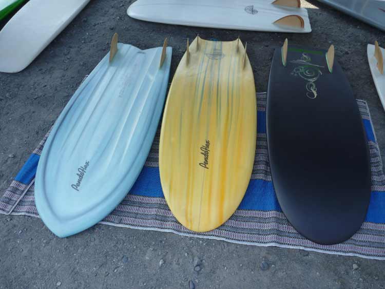 早速試乗スタートしたようで、いろんなボードを抱えたサーファーたちが楽しそうに海へ入っていきます。