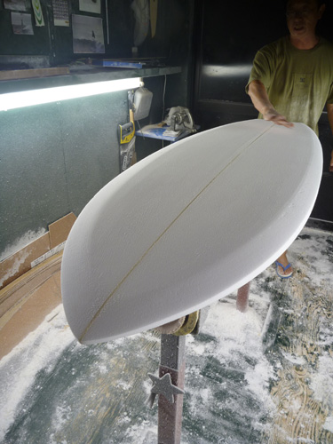 それをそのまま使えばバランスのいい、調子いいボードが出来上がるように作られています。以前、自分でシェイプした5.2のフィッシュは、もとになったブランクスのデザインを壊さないようにシェイプをしたので、素人シェイプながらそれなりに走ってくれているのがいい例です。